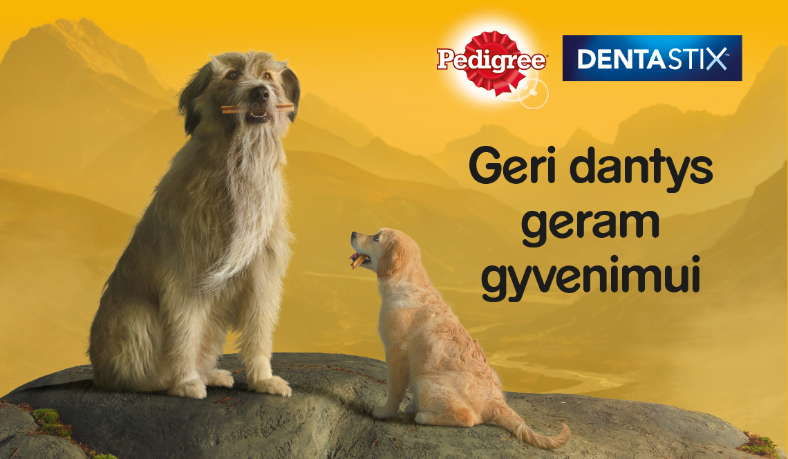 Duokite Pedigree® DentaStix™ lazdeles – jos yra puikaus skonio, neleidžia susidaryti dantų apnašoms ir akmenims, o dantys ir dantenos bus sveiki.